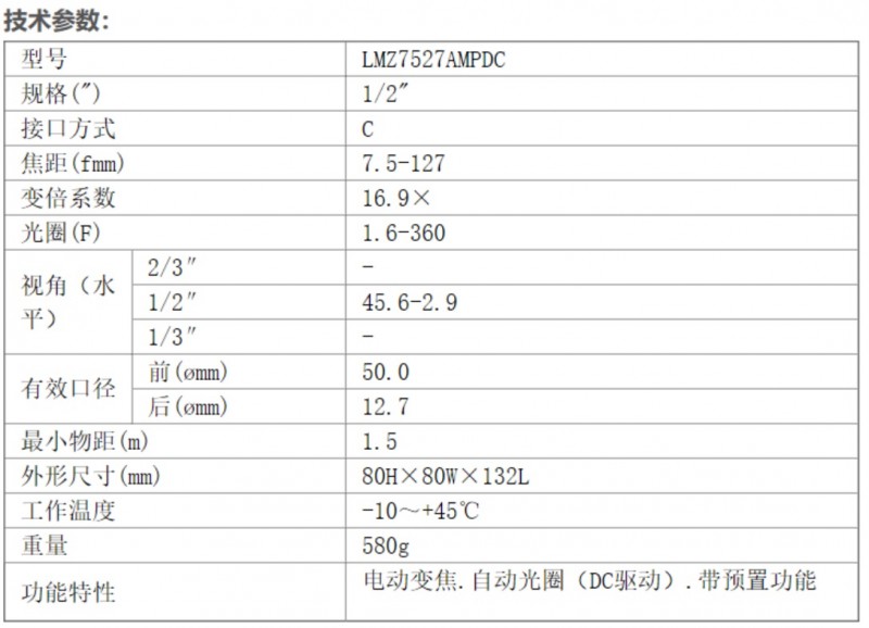 HD17x7.5A-YN1富士能128mm小焦距高清镜头