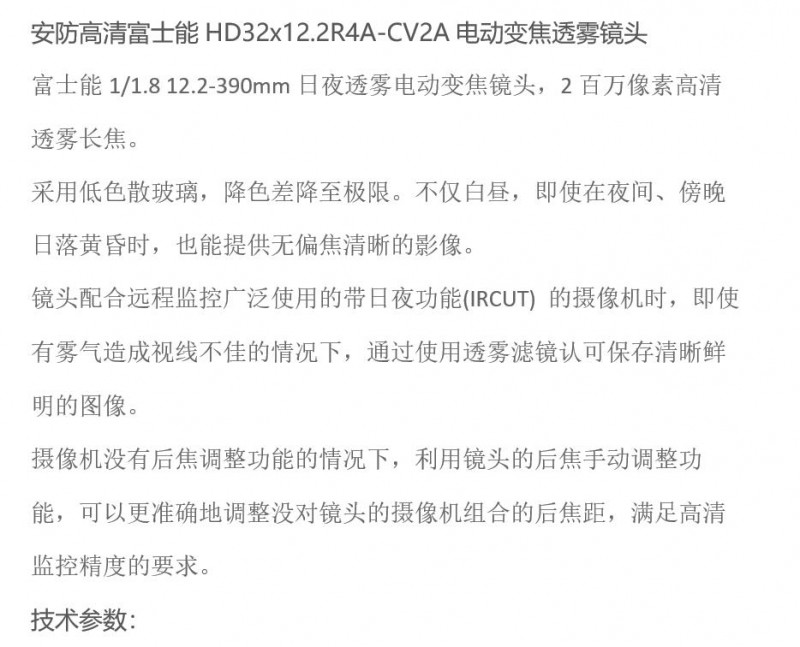 HD32x12.2R4A-CV2A富士能电动变焦透雾镜头