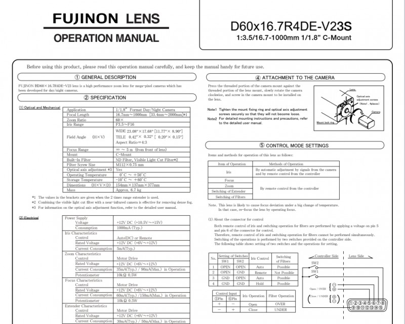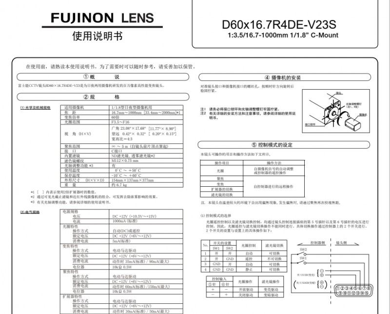 D60×16.7R4DE-V23S富士能日夜两用长焦镜头