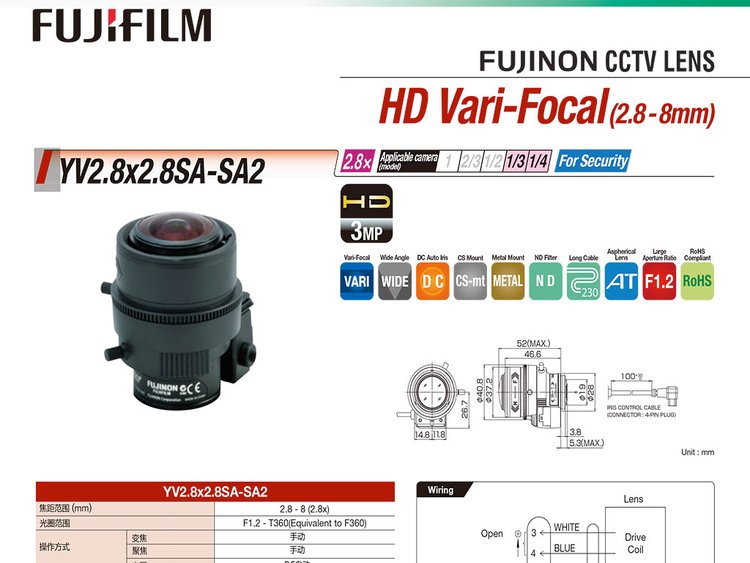 YV2.8x2.8SA-SA2L富士能高清手动变焦镜头